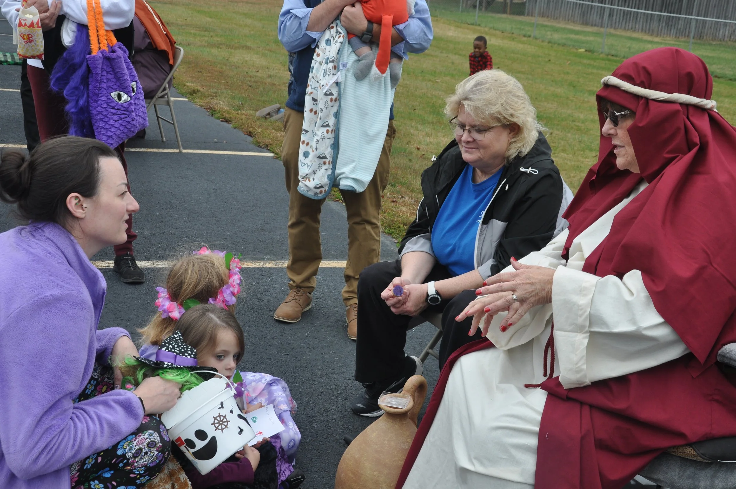 On October 30, 2022, we hosted a Meet and Treat event where children could meet their favorite Bible characters and hear their stories. Activities and treats included cotton candy, Brunswick stew, hot dogs, popcorn, crafts, prizes, and a bonfire with s’mores.
